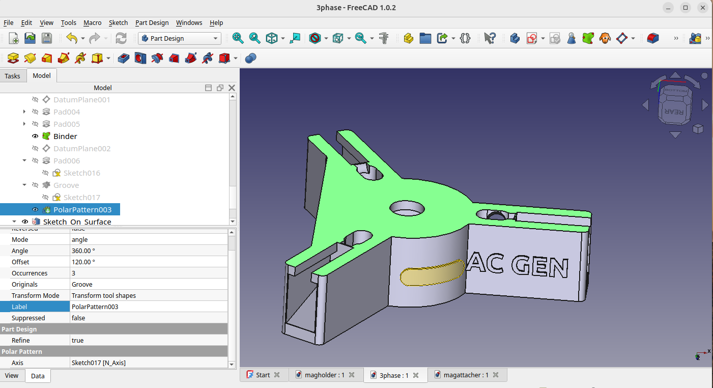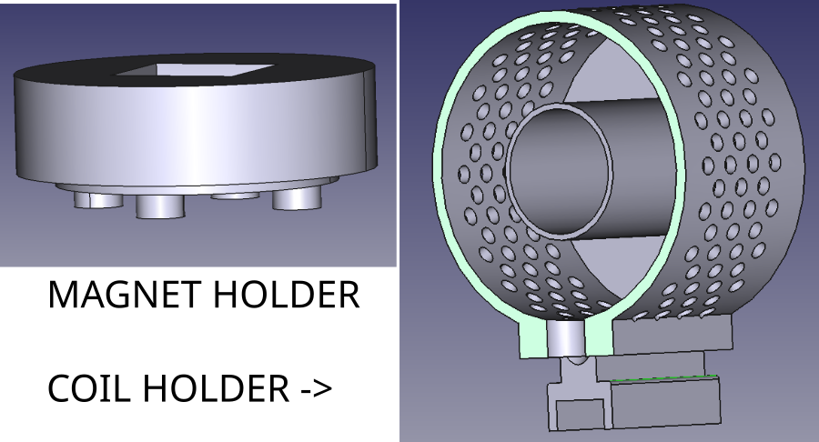 Photo of the setup designed with FreeCAD and printed on a BambuLabs P1S. The magnet holder wasn’t symmetric enough, so I redesigned it later.