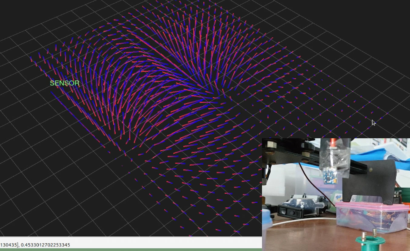 Magnetic field gradient : Raster scan a magnetometer to plot field lines. Used a laser engraver for the XY gantry, and an HMC5883L magnetometer with SEELab3.