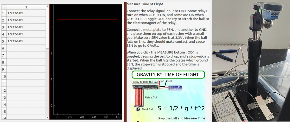 Time of flight : Measure time taken for an object in free fall by using SEELab3 , and verify S=0.5gt^2